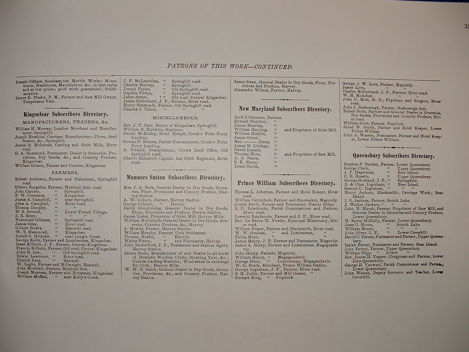 The maps reproduced here have been compressed in JPG format from higher resolution TIF files. Researchers wishing to have the full-quality map images on CD-ROM can contact me by e-mail. This atlas of York county was first published in 1878 by H. E. Halfpenny. It is an excellent record of the farmers and townspeople who lived in this large county and invaluable for finding their residences and places of business. It can be used in conjunction with the censuses of 1871 and 1881 to situate families geographically and identify their neighbours and local relationships.
